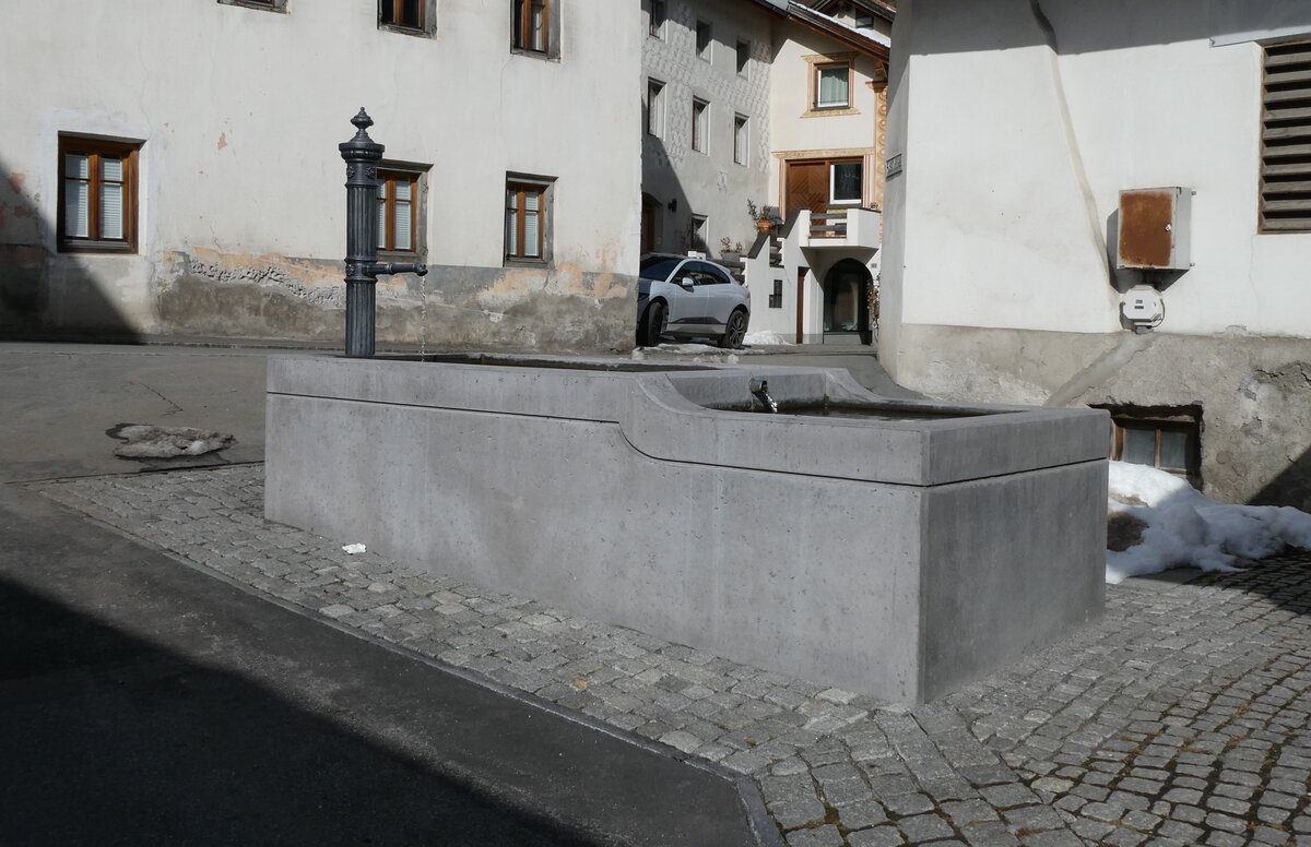 (284'816) - Brunnen am 10. Februar 2026 beim Bahnhof Zernez